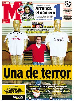 "A bajnokság megnyerése nehéz, de nem lehetetlen" - mondta Thomas Gravesen a tegnapi nap folyamán. Tény ami tény, hogy mostantól már csak a spanyol bajnokság maradt utolsó szalmaszálként a királyi gárdának, bár a hátrány meglehetősen tetemesnek tűnik az éllovas Barcelonával szemben. Ennek ellenére a Real Madrid aligha fogja feladni, s Robinho szavaival élve, az első nagy lépést a bajnokság izgalmassá tétele felé ma este teheti meg a fővárosi gárda, amikor is 22 órás kezdettel a Valencia otthonában vendégszerepelnek. Kétség kívül ez ígérkezik a forduló legizgalmasabb összecsapásának, hiszen mindkét gárda papíron még veszélyt jelenthet a katalán óriásra, viszont egy esetleges mai kudarc, mindkét együttes számára beláthatatlan következményekkel járhat.