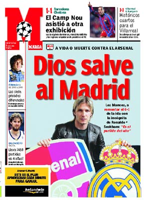 Pokoli nehéz mérkőzés vár ma este 20 óra 45 perces kezdettel a Real Madrid csapatára. A királyi gárda a Bajnokok Ligája nyolcaddöntőinek visszavágóján lép pályára az Arsenal ellen idegenben, s csak abban az esetben jut be a legjobb nyolc csapat közé, ha sikerül legyőzni a hétvégi bajnoki fordulón parádézó londoniakat. Ami biztos, hogy nem fogunk unatkozni, sőt az előzetes nyilatkozatok szerint mindkét csapat egyértelműen támadólag fog majd fellépni, így akár gólgazdag mérkőzésre is számíthatunk. A spanyol sajtó is kiemelt helyet szentel a mai rangadónak, s egyes híresztelések szerint a mai ütközet a vezetőedző személyére is kihatással lehet, ugyanis amennyiben a blancók ma kiesnek, akkor Fernando Martín meghozza első radikális lépését: meneszti Juan Ramón López Carót, a gárda jelenlegi szakvezetőjét.